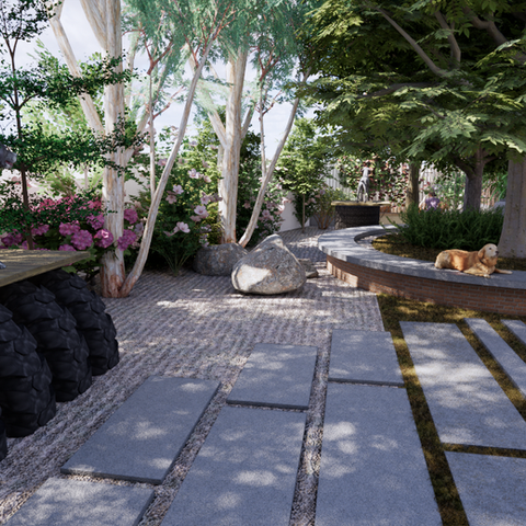 With limited us of gravels and lawn, it was challenging to rely solely on conventional materials for outdoor spaces. Understanding the dog breed and the pack composition helped us to arrive to a comprehensive design solution.