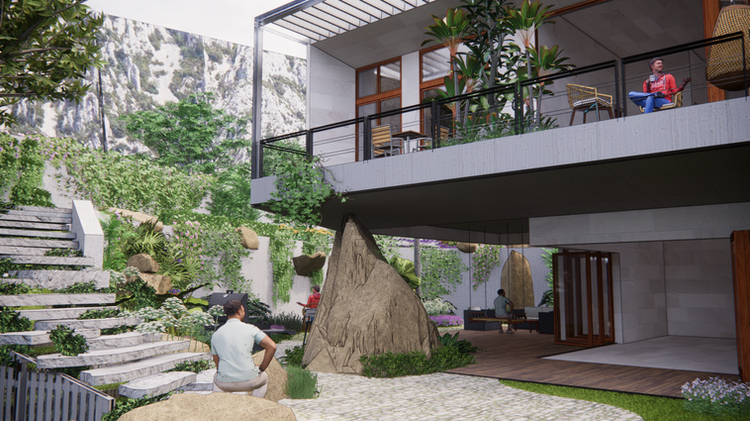 The brief simply was a question what type of landscape are we looking at and the contemplation lead us to an Indian garden. It was very difficult at first to define this brief in terms of a strong visual aesthetic, eventually we found value and attachment to what habits of ours as an Indian mold our garden, and it was the sensory experience. We all like to show off our gardens, but here there was more than just beautiful plants. We housed plant variety from different parts of the country, also the meaning behind each plant and their significance in cultural and ecological front was taken into consideration. The indoors seamlessly flows into the landscape space, in terms material and circulation of space.